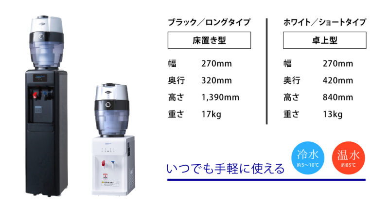 水道水からミネラル水素水をつくるウォーターサーバーとして人気のアクアバンクがバージョンアップして新登場。お客様に人気の高い3つの水質を、それぞれニーズにあわせて「選ぶ」ことができるようになりました。AQUA-DOREでは、使う楽しさ、選べる楽しさを追求し、あなたにとってのマイウォーターがご利用いただけます。